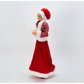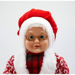 Adorável peça decorativa para o Natal! Com sua postura e expressão amigável, esta Mamãe Noel transmite um ar de alegria e generosidade. Vestido com seu clássico traje vermelho e branco, com detalhes prateados, ela adiciona um toque acolhedor e festivo a qualquer ambiente.