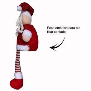- barba de algodão muito fofa . a barba não é removível . - tem um gorro que deixa ele mais chamativo, muito lindo. não é removível - as pernas dele são moles/maleáveis para facilitar deixar ele sentadinho em alguma quina - ele tem um peso extra por dentro para ele ficar sentadinho.