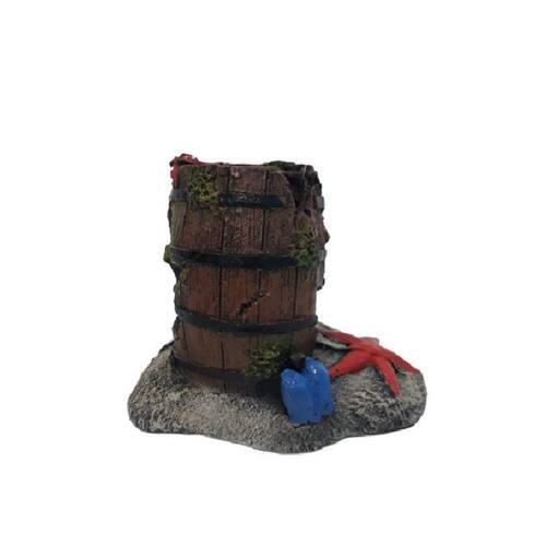 Barril com estrela: Enfeite para uso submerso em aquário de água doce ou salgada. Pintura feita a mão super resistente ao meio biológico. Material: Resina de poliéster material atóxico Peças exclusivas Fragata Enfeite podendo também ser utilizado como peças de decoração Medidas: 16x13x11 cm Ean: 7895098034258