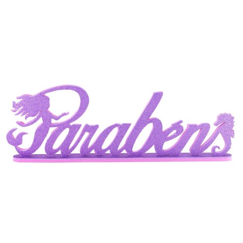 Enfeite Parabéns Sereia é produzido em E.V.A. De 10 mm com a parte frontal em glitter lilás, lindo para decorar a mesa principal de sua festa. Tem na palavra PARABÉNS detalhes de sereia e cavalo marinho, tornando ainda mais sua decoração. Super fácil de usar. Sua dimensão é aproximadamente 20 cm de altura por 53 cm de largura.