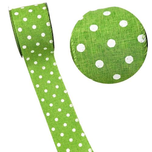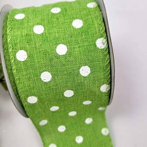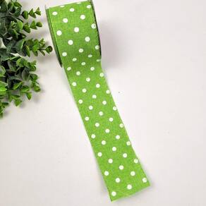 Enfeite Páscoa Fita Aramada Verde Bolinha Branca 6cmx9m Fita Aramada Verde com bolinhas brancas para Páscoa e festas
