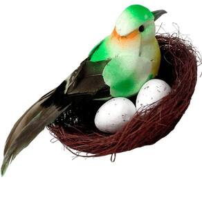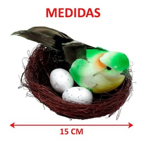 Conteúdo da Embalagem: 1 pássaro verde no ninho de 15cm