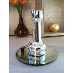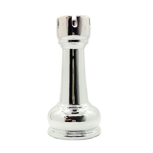 Enfeite Peça de Xadrez em Porcelana Prata Torre 17 cm