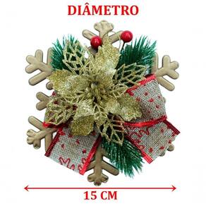 Cores: Vermelho, Verde e Dourado;Material: Plástico e Poliéster;Medidas: ;Diâmetro 15cm;Conteúdo Da Embalagem: