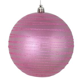 Vickerman Bola de enfeite de Natal de 12 cm, acabamento rosa doce com linhas de glitter, plástico inquebrável, decoração de árvore de Natal de férias, pacote com 4