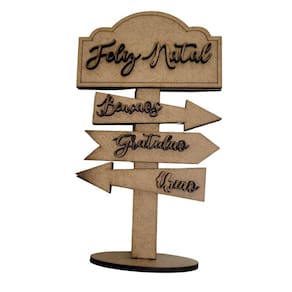 ONDE USAR: Enfeite Natalino para bases de apoio ou mesa detalhes sobrepostos como Placas informativa com flechas e palavras de desejos para o Natal.