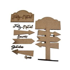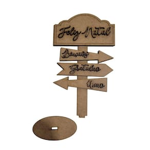Placa indicativa com flechas com desejos de Natal ; com base para ficar em pé como enfeite de mesa; possui apliques sobrepostos