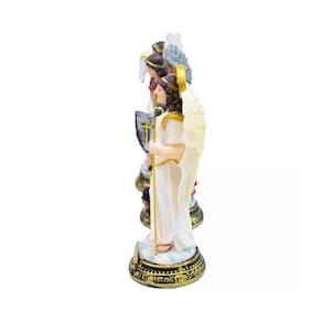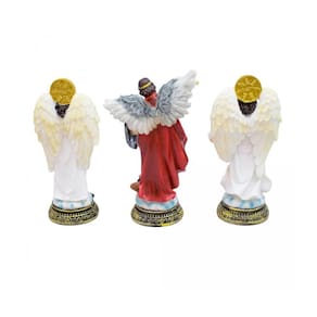 Com sua altura de 16cm, o enfeite Três Arcanjos se destaca e chama a atenção, trazendo um toque especial para qualquer espaço. Seu detalhe realista e acabamento impecável garantem um visual sofisticado e elegante.