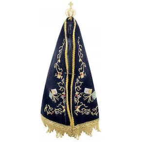 Nossa Senhora Aparecida Manta Tecido 35.5Cm - Enfeite Resina Enfeite em forma de resina da imagem de Nossa Senhora Aparecida de 35.5 cm. Manta de tecido, removível. Detalhes da Imagem da Nossa Senhora Aparecida com 35.5cm: Peso 0,620 gramas; Altura 35,50cm; Largura 17cm; Comprimento 12cm.