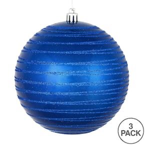 Vickerman Enfeite de bola com acabamento azul doce de 15 cm com linhas de glitter. Inclui 3 ornamentos por bolsa.