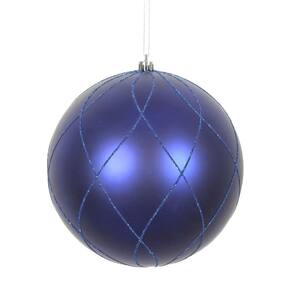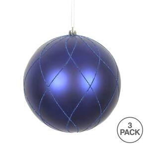 Vickerman Ornamento de bola espiral fosco e glitter azul cobalto de 15,24 cm, 3 por caixa