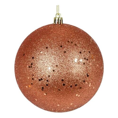 Enfeite de bola de lantejoulas de coral Vickerman de 6". Este ornamento apresenta acabamento em lantejoulas que adicionará brilho a qualquer projeto de decoração natalina. Este item é feito de plástico inquebrável e utiliza uma tampa segura perfurada e com fio para uma suspensão confiável. Este ornamento exclusivo é uma adição excepcional a qualquer coleção, pois combina bem com uma variedade de decorações e combina perfeitamente com uma árvore natalina. Inclui 4 enfeites por pacote.