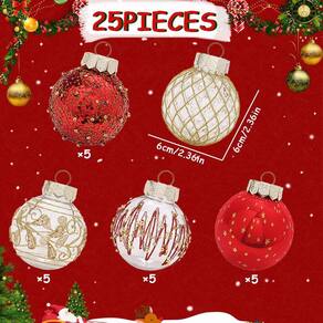 - Fácil de pendurar: cada acessório de bola de Natal vem com um gancho para pendurar facilmente, facilitando a penduração em árvores de Natal, portas, paredes fotográficas, janelas e outros lugares