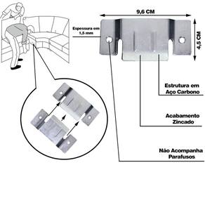 Engate Conector União Para sofá Cabeceiras e Painel de TV 50 Pares Este suporte é muito versátil e pode ser em diferentes situações, ele é muito utilizado para fazer a união das partes do sofá como os braços ao corpo, mas também pode ser utilizado para pendurar painéis e nichos, sua base de encaixe é grande, o que facilita na hora de encaixar, ele tem também bases laterais que impedem que o painel saia pelos lados. Uma das vantagens deste tipo de suporte é o visual, pois ele fica oculto atrás do painel ou nicho, contribuindo para um design limpo de moderno. Mão amiga, União de Encaixe ou engate. Vários nomes para um para produto versátil e com diversas finalidades. Diversas aplicações como: Fixar na parede cabeceira de cama box, quadros, painéis, conectar sofás de canto ou modulado. Fabricante: Metalúgica Munhoz Material: Aço galvanizado Modelo: União/junção Cor: Prateado Indicado Para: Móveis, Sofás, Cabeceiras e Paineis de TV Quantidade: 50 Pares Capacidade de carga: 25 kg Por Par Comprimento: 97mm Largura: 45mm Espessura: 1,5mm Imagens Meramente Ilustrativas Marca: Não Informado