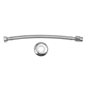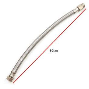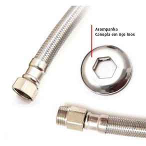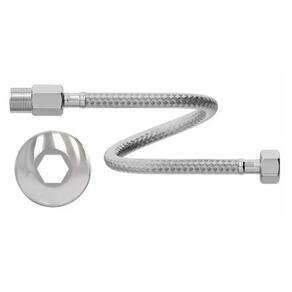 Engate flexível de 30cm de alta vazão, com conexão fêmea x macho, utilizado em instalações hidráulicas de água quente ou fria. Produzido em malha trançada de aço inoxidável e tubo interno de borracha, possui rosca 1/2" Temperatura máxima: 100°C Ean: 7891234510075
