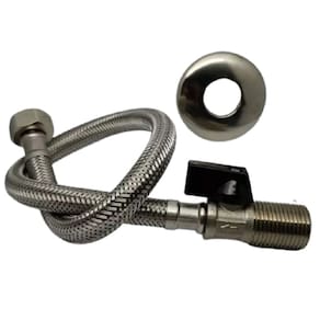 Engate flexível com Registro - 40 cm de comprimento. A facilidade do registro diminui a pressão da água ou corta o fornecimento de água no caso de vazamentos, reparos, etc. Ideal para pias, caixa acoplada do vazo sanitário e demais pontos que precisam desse recurso. Entrada e saída 1/2 polegada; macho e fêmea Fabricado em aço inoxidável; suporta alta pressão e água quente ou fria. Ean: 7891234510105
