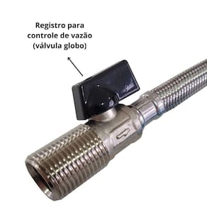 Engate Flexível com Registro 40cm Aço Inóx Lavatório Torneiras Banheiro Cozinha