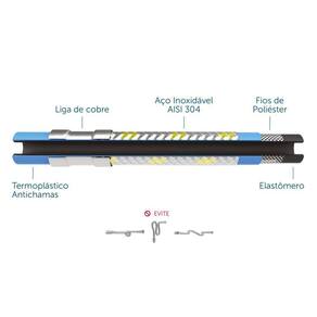 A malha em aço inoxidável assegura resistência a qualquer intempérie, garante flexibilidade, absorve ruídos e vibrações, além de proporcionar perfeito acabamento às peças. Ideal para o uso em fogões, fogareiros, aquecedores de passagem e fogões industriais, as ligações flexíveis para gás também podem, eventualmente, ser utilizadas para conduzir água.