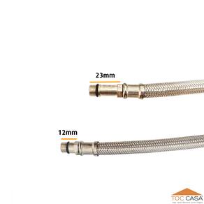 Malha de aço Inoxidável e rosca padrão para qualquer marca de torneira misturador monocomando.