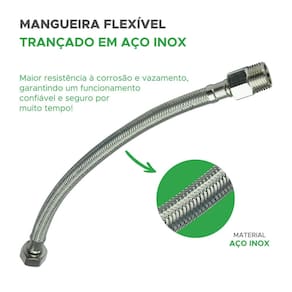 Engate Mangueira Flexível Trançado Aço 1/2 40Cm Quente Fria