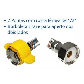 Conexão para Água Quente e Fria: Engate para saída separada, proporcionando versatilidade. Conexões Fêmea e Fêmea: Rosca padrão, fácil de instalar. Engate fêmea seguro: Conexão vedada e sem vazamentos Temperatura Máxima Suportada: Até 80C, adequado para diversas aplicações. Inodoro e Não Oxida: Atoxicamente seguro, ideal para uso em ambientes internos.