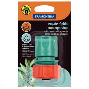 Com o engate rápido com aquastop Tramontina em plástico para mangueira 5/8 e 3/4 polegadas você tem uma peça prática, que vai facilitar seu trabalho. Possui engate com aquastop, que permite a troca do acessório escolhido para irrigação, mesmo com a torneira aberta, sem risco de vazamento de água, o que faz com que você economize tempo e seu trabalho renda muito mais. Orientações - Produto fabricado com matéria-prima de alta qualidade proporcionando uma irrigação precisa e confiável.- Utilizado na saída de água da mangueira.- Conexão por sistema de fixação rosqueado à mangueiras de 3/4" e 5/8".- Com sistema Aquastop, que bloqueia a saída de água ao remover o acessório.- Conexão tipo click aos acessórios de irrigação, através de 2 garras. Características Gerais EAN13 7891117043492 DUN14 27891117043496 NCM 3917.40.90 Peso Líquido 0,0500 kg. Peso Bruto 0,0600 kg. Metragem 0,000574 m³. Dimensões Embalagem (Compr. X Larg. X Alt.) 130x 80x 45 mm. Dimensões Produto (Compr. X Larg. X Alt.) 43x 43x 65 mm. Cor 1 009900 Hexa Observações - O engate faz a ligação do sistema com a rede de água e com os pontos de saída.- O engate rosqueado é usado em mangueiras de 3/4" ou 5/8".- Água: pode faltar. Não desperdice.- Para descarte dos produtos e embalagens siga as orientações de reciclagem vigentes.