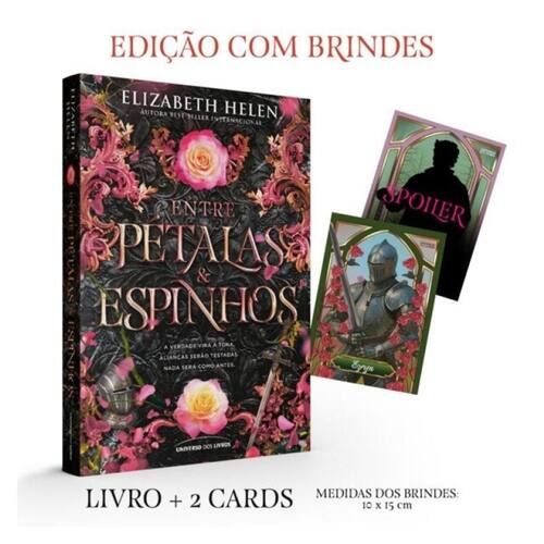 Prepare-se para ser consumido! Entre pétalas e espinhos eleva a romantasia a um novo patamar, com coragem ardente, destinos entrelaçados e segredos perigosos. Tudo o que você mais ama em uma história inesquecível! Ser parte do mundo feérico é maravilhoso. Porém, o castelo encantado onde moro está caindo aos pedaços e cada um de meus príncipes enfrenta uma crise pessoal própria. Para piorar, o infame Príncipe dos Espinhos está sempre tentando me beijar. E eu meio que estou a fim disso. Quando rumores sobre uma guerra se espalham pelo Reino da Primavera, um inimigo cruel não vai poupar esforços para me matar e tomar esse reino. Agora, mais do que nunca, vou precisar iluminar um caminho para meus príncipes e ajudar Ezryn, o Alto Príncipe da Primavera, a recuperar seu trono. Não posso permitir que ele se perca na escuridão… a menos que eu me perca primeiro. Sobre a autora Elizabeth Helen é o pseudônimo resultante da combinação dos nomes de duas irmãs escritoras, Elizabeth e Helen. Elas escrevem fantasia romântica e adoram criar aventuras encantadoras para seus personagens. Quando não estão escrevendo, é possível encontrá-las afagando seus gatos, explorando sua casa em meio à floresta tropical ou jogando os dados de Dungeons & Dragons . Leia também Entre feras e espinhos , Elizabeth Helen (Feras & Príncipes, vol. 1) Entre fogo e espinhos , Elizabeth Helen (Feras & Príncipes, vol. 2) O rei da Terra do Nunca , Nikki St. Crowe (Vicious Lost Boys, vol. 1) A sombra da Terra do Nunca , Nikki St. Crowe (Vicious Lost Boys, vol. 2) A rainha da Terra do Nunca , Nikki St. Crowe (Vicious Lost Boys, vol. 3) Os príncipes da Terra do Nunca , Nikki St. Crowe (Vicious Lost Boys, vol. 4) O devorador de homens , Nikki St. Crowe (Duologia Devourer, vol. 1)