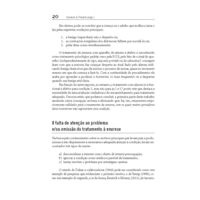 Em qualquer ambiente com crianças e adolescentes em idade escolar, é praticamente certo que a enurese está presente, embora não manifestado devido à vergonha daqueles que sofrem com o xixi na cama. Este livro é fruto de vinte anos de pesquisas realizadas no Laboratório de Terapia Comportamental do Instituto de Psicologia da Universidade de São Paulo (IPUSP), coordenadas pela Dra. Edwiges Ferreira de Mattos Silvares, professora titular do Departamento de Psicologia Clínica do Instituto de Psicologia da USP. Ean: 9788565852005
