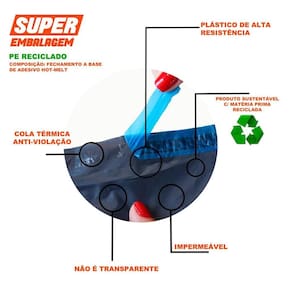 O envelope de segurança ecológico cinza/preto é fabricado pela super embalagem com plástico polietileno reciclado, possui fechamento com cola térmica hot melt, este produto leva praticidade é um envelope de simples manuseio e fácil armazenamento, o que garante agilidade na operação e redução de tempo no processo de expedição. Os envelopes de segurança podem ser utilizados em qualquer segmento que exija proteção e anti-violação no envio e/ou transporte, alguns exemplos: concursos, provas, vestibulares, eventos e indústrias que necessitam de sigilo e discrição. Especificações: dimensões: 70cm x 50cm quantidade: 600 unidades composição: polietileno reciclado fechamento: adesivo: hot-melt de segurança anti violação cor: preto sem transparência impossibilitando visualização do interior. Características: - resistente à poeira, umidade e luminosidade. O seu produto vai chegar ao seu cliente bem apresentado, limpo e protegido. - adesivo hot-melt de alta qualidade que garante o fechamento rápido. - é altamente resistente a rasgos e rupturas. - segurança inviolável, ou seja, depois de lacrado, só poderá ser aberto com algum objeto cortante. - caso o envelope seja violado, irá demonstrar sinais de adulteração, sendo impossível retornar ao formato. - é leve e diminui o custo do envio em relação à caixas de papelão, e você não vai mais gastar com fita adesiva. - produzido com matéria-prima reciclada, possui alta resistência e ausência de odor característico de material reciclado. - os nossos envelopes plásticos passam por um rigoroso controle de qualidade que garante uma ótima apresentação visual, sem rebarbas ou defeitos. Marca: Super Embalagem