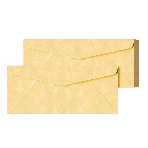 Os envelopes são feitos de papel estacionário de imitação Bond Bond de alta qualidade e durável de 24 libras (60 libras de texto). Seu elegante e clássico acabamento em pergaminho New Champagne cobre o exterior e o interior do envelope. É o envelope que seus amigos e clientes vão adorar!