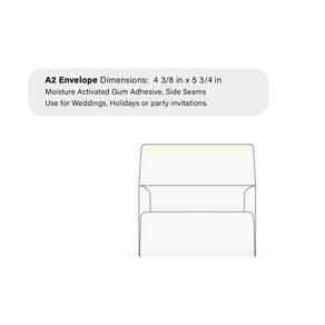 Uma quantidade de 1.000 envelopes para convite A2 - Papel de trama branca nº 24 com uma aba quadrada de 6,5 cm. Este envelope é adequado para um cartão de 11,4 x 14,8 cm. Nosso envelope de convite A2 pode ser utilizado para enviar: convites, cartões de visita ou anúncios. Use este envelope casual para todas as suas necessidades de envio.