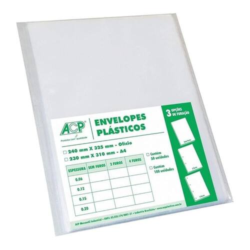 Envelope Saco Plástico A4 Acp 0,06Mm Sem Furos C/100 Fino
