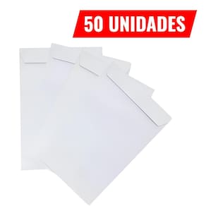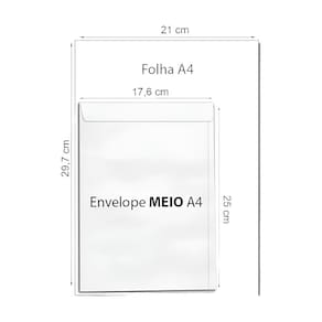 Tamanho: 176mm x 250mm ideal para documentos Meio A4 Quantidade: 50 unidades Cor: Branco Tipo de Fechamento: Liso, sem janelas Uso: Perfeito para envio de documentos, cartas e outros papéis Gramatura: Alta resistência e durabilidade