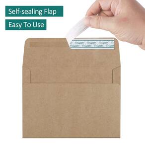 Aba autovedante: os envelopes marrons são fáceis de usar. Basta retirar a tira e selar a aba para enviar facilmente, sem necessidade de lamber ou umedecer. Além disso, a adesão da aba nos envelopes de convite 5x7 é bastante forte, segura e duradoura, evitando que o conteúdo caia durante o trânsito.