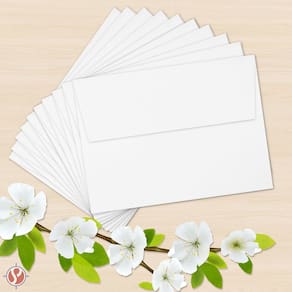 Nossos envelopes A7 brancos brilhantes de 12,7 kg são ótimos para caber seus cartões ou convites de 12,7 x 17,7 cm. Estes envelopes medem 13,35 x 19 cm e são feitos de papel de ligação de 12,7 kg, que é um passo acima do peso médio do envelope. Os envelopes funcionarão muito bem na sua impressora a jato de tinta ou laser e a aba do envelope é colada.