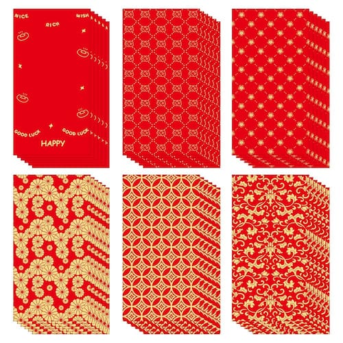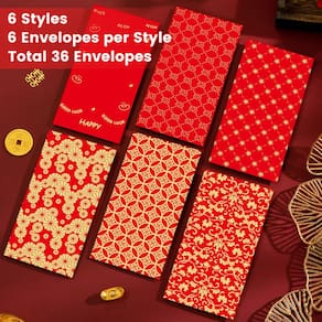 Celebre o Ano da Cobra 2025 com nossos envelopes vermelhos premium de Ano Novo Chinês. Perfeito para presentear, estes envelopes de dinheiro para presentes em dinheiro combinam tradição com elegância. Cada envelope vermelho é feito de materiais de alta qualidade e vem em uma carta versátil de 16,59 x 8,48 cm — ideal para dinheiro, cartões de presente ou notas sinceras. Estes envelopes vermelhos não são apenas para o ano novo lunar; seu design vibrante os torna adequados como envelopes de férias ou envelopes de presente para dinheiro para casamentos, aniversários e muito mais. Compartilhe a alegria da tradição com estes deslumbrantes envelopes vermelhos chineses e Hong Bao. - Contém 36 pacotes vermelhos, conhecidos em chinês como "hongbao/?", projetados com 6 estampas fofas, cada uma com 6 peças. Bolsos vermelhos simbolizam alegria, harmonia e melhores desejos. À medida que o Ano Novo Lunar Chinês se aproxima, estes envelopes vermelhos de ampao tradicionais chineses são um presente sincero que ninguém pode resistir - Cada envelope vermelho é projetado para elementos tradicionais chineses, apresentando 6 estilos com símbolos auspiciosos e festivos chineses exclusivos. Feito de papel premium com impressão de folha bronzeada em relevo, eles combinam tradição com elegância, tornando-os perfeitos para celebrar e presentear durante a temporada festiva - Os envelopes vermelhos medem 16,59 x 8,5 cm, perfeitamente dimensionados para caber em dólares americanos ou RMB chinês sem dobrar. A parte traseira possui um fecho dobrado com uma aba para vedação segura. Feito de papel grosso premium, não requer adesivo, permitindo fácil reutilização enquanto mantém a durabilidade e a qualidade - Bom para o Ano Novo Chinês, casamentos, aniversários ou feriados. Ideal para presentes em dinheiro, notas sinceras e pequenas fichas, também bom para sementes, botões, cartões, carimbos e outros itens pequenos. O design clássico não se limita a anos ou estações e também é adequado para uso diário - Vamos celebrar o Ano Novo Lunar Chinês juntos! Nesta ocasião especial, a LMOMSS envia nossos sinceros desejos de um ano alegre, próspero e saudável pela frente. Esperamos que nossos envelopes vermelhos tragam sorte e felicidade. Em caso de dúvidas, sinta-se à vontade para entrar em contato — estamos sempre aqui para ajudar