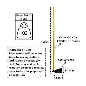 Enxada Catarina Estreita em Aço Cabo Madeira Jardim 150cm