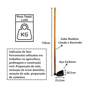 Material da Enxada: Aço Carbono.