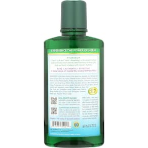 - FÓRMULA SUAVE, MAS PODEROSA - Este enxaguatório bucal natural contém uma potente fórmula ayurvédica com 23 extratos de ervas e 9 óleos essenciais, incluindo Neem e Peelu para um frescor duradouro - COMO USAR - Para obter melhores resultados, enxágue a boca com água primeiro. Use aproximadamente 1/2 xícara de enxaguatório bucal e agite por pelo menos 1 minuto. Gargareje e cuspa o enxaguante bucal ao terminar