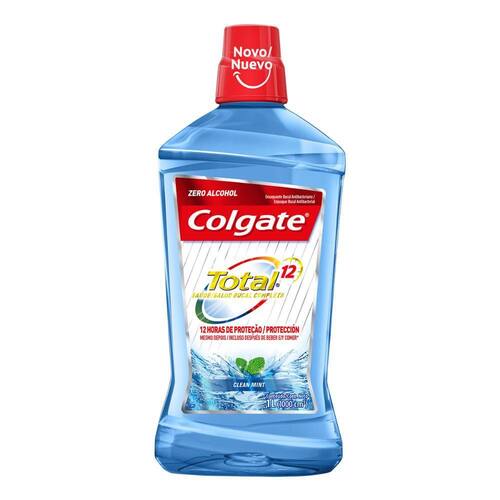 Enxaguante Bucal Colgate Total 12 Clean Mint 1l O Enxaguante Bucal Colgate Total 12 oferece 12h de proteção contra a formação de tártaro, cárie e placa. Benefícios: -Protege por até 12 horas contra bactérias e reduz as bactérias da boca em até 99%*. -Previne problemas da gengiva causados por germes e mantém a gengiva saudãvel. -Previne contra a cárie, a formação do tártaro e de placa. -Combate o mau-hálito e fortalece o esmalte. -Fortalece o esmalte e previne a perda de minerais dos dentes. -Limpa em lugares difíceis de alcançar * usando enxaguante Colgate Total 12 2x ao dia vs enxaguantes sem ingredientes antibacterianosContém CPC: Estudos de laboratório conduzidos pela Colgate demonstram que os cremes dentais que contém zinco e os enxaguantes bucais que contém CPC neutralizam em 99.9% o vírus. *Compre Produtos Colgate.