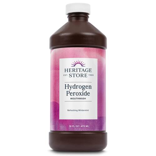 Enxaguante bucal com peróxido de hidrogênio HERITAGE STORE, autêntico, líquido, mentol (Btl-Plastic) | 16 onças