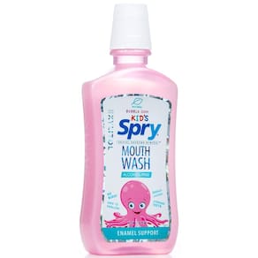 - INSTRUÇÕES: Enxágue com força total por 60 segundos pela manhã e na hora de dormir com meia tampa cheia de enxaguante bucal após escovar com o creme dental infantil Spry ou outro creme dental para crianças pequenas. Também é recomendável usar fio dental infantil antes ou depois de cada escovação.