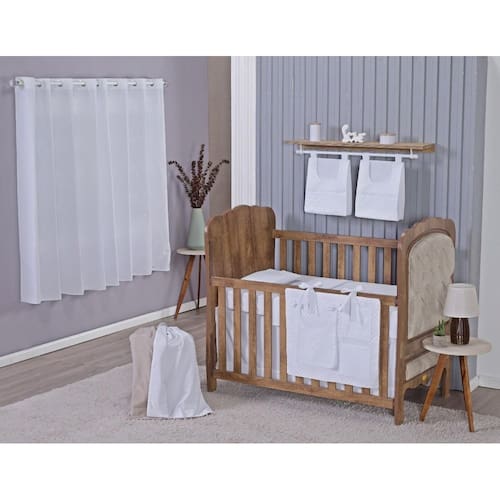 Enxoval de Bebe Kit de Berço Americano Cortina Algodão Menino Menina 8 Peças Cor: Branco Seus filhos merecem todo conforto e aconchego possível