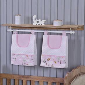 Contém na embalagem: 1 lençol com elástico 1,30m comp x 0,70m larg x 0,15m alt 1 lençol sem elástico 1,35m comp x 1,05m larg 1 fronha 40cm comp x 30cm larg 1 manta dupla face 1,15m comp x 0,95m larg manta de microfibra na cor bege de um lado e tecido de algodão do outro 2 porta fraldas 43cm alt x 32cm larg x 10cm prof para ser pendurado em varão em móveis ou na parede 1 porta treco 64cm larg x 54cm alt para ser pendurado em varão ou no berço 1 cortina 2,70m larg x 1,60 alt 2 partes de 1,35m larg
