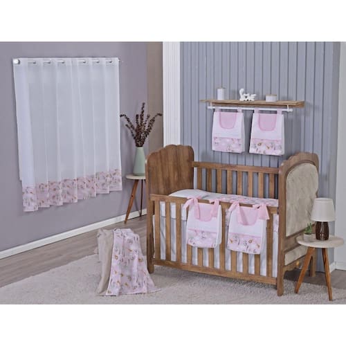 Enxoval de Bebe Kit de Berço Americano Cortina Algodão Menino Menina 9 Peças Cor: Safari rosa Seus filhos merecem todo conforto e aconchego possível