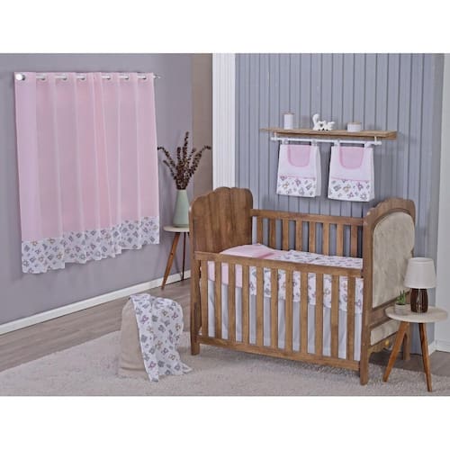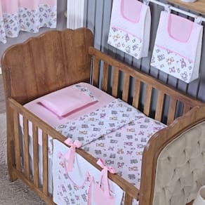 Enxoval de Bebe Kit de Berço Americano Cortina Algodão Menino Menina 7 Peças Cor: Urso rosa Seus filhos merecem todo conforto e aconchego possível
