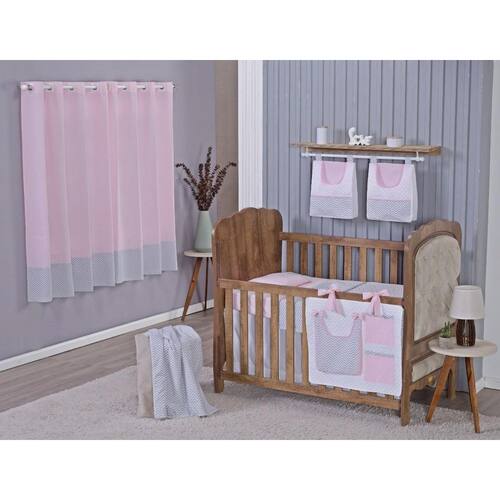 Enxoval de Bebe Kit de Berço Americano Cortina Algodão Menino Menina 8 Peças Cor: Chevron rosa Seus filhos merecem todo conforto e aconchego possível