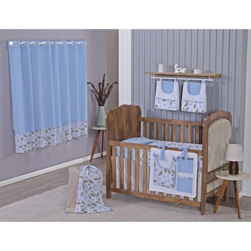 Enxoval de Bebe Kit de Berço Americano Cortina Algodão Menino Menina 8 Peças Cor: Nuvem azul claro Seus filhos merecem todo conforto e aconchego possível