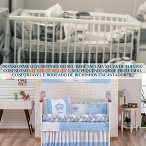 Transforme o quartinho do bebê com um toque de realeza, conforto e carinho Apresentamos o Kit Berço 11 Peças Realeza Menino, um enxoval luxuoso, bordado com detalhes encantadores, que une beleza e proteção em cada peça.
