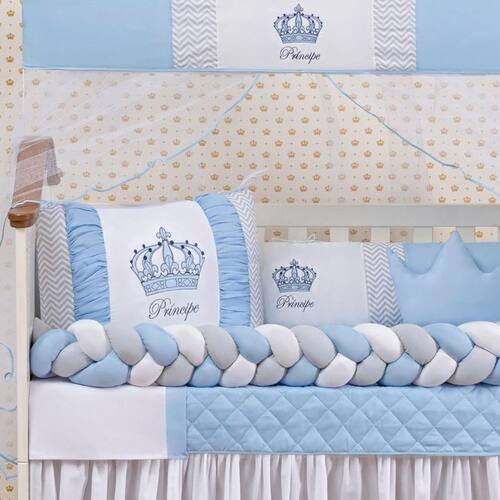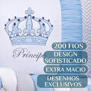 O bordado delicado com tema Realeza, as cores suaves, o toque do tecido e o cuidado com o acabamento fazem toda a diferença para quem quer montar um quartinho digno de príncipe.